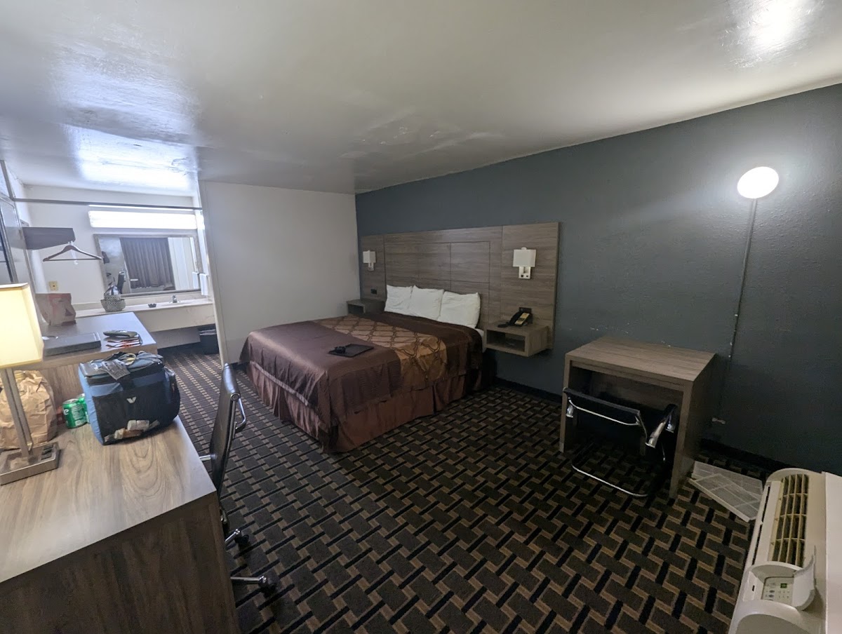 We've been on a road trip and this has been the best. The room was clean; the sheets felt fresh and were clean; the man at the front desk was so nice and polite. That' was the only need for service.the ice machine worked, unlike the last hotel. We stayed on the backside by the pool, so it was a lot quieter. There's a nice RV park next door. We felt safe, even though we had to park our car where we couldn't see it. It's also next door to a truck stop with aKFC and Subway. The price was $100 total with tax and pet fee. This was worth the price for a no frills, clean room. I would absolutely stay here again!